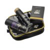 Crep Protect Starter Pack je cestovní balíček obsahující 1x impregnační sprej proti vodě a nečistotám (50 ml), 1x pěnový čistič s jemným kartáčem (50 ml) a 6 čistících ubrousků v ochranném pouzdře.