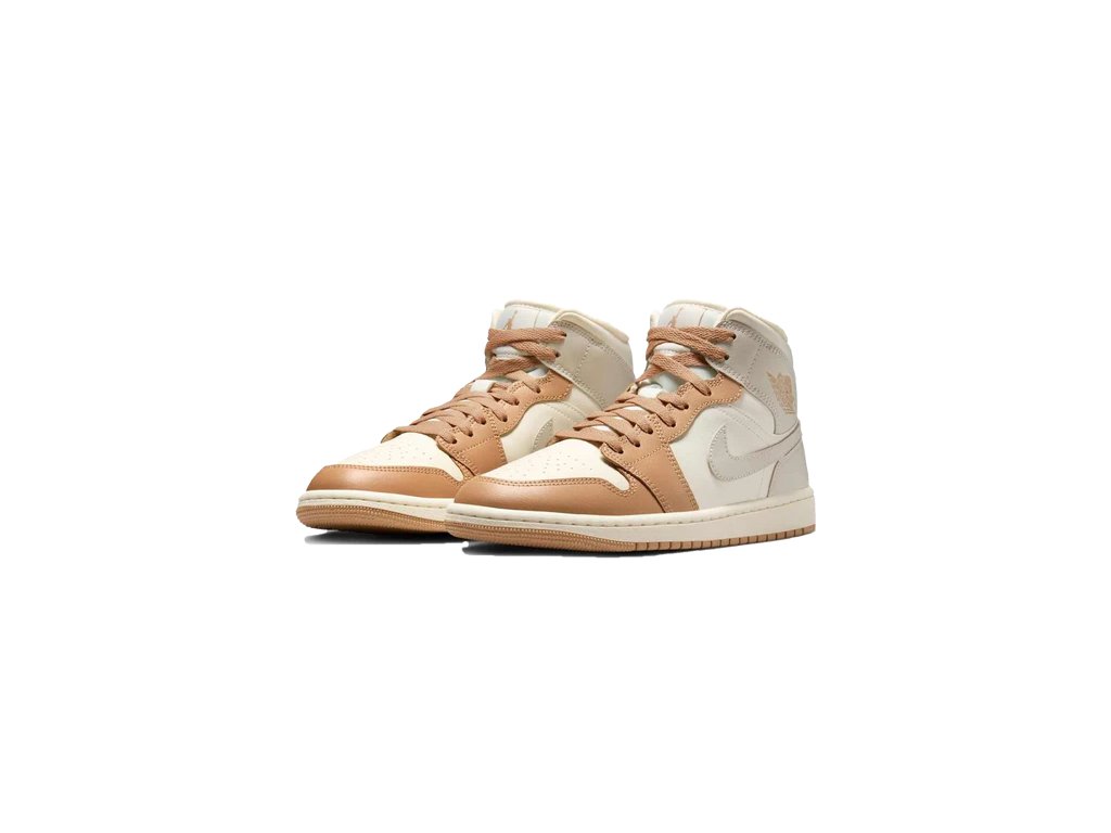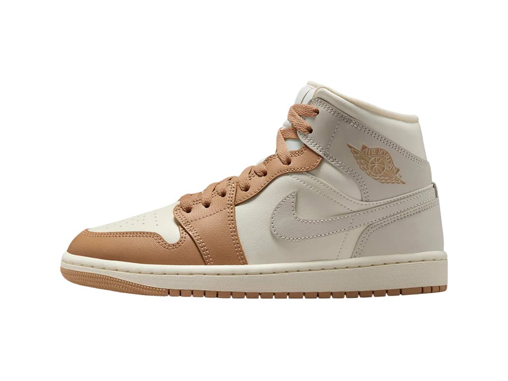 Jordan 1 Mid "Tan Toe" byly vydány v létě 2025. Tenisky mají bílý hladký kožený svršek s béžovými panely na špici a šedými panely u kotníkové části. Na boku mají vyražené béžové logo Wings a šedivé Swoosh logo. Design doplňuje tkaný štítek Jumpman na jazyku.