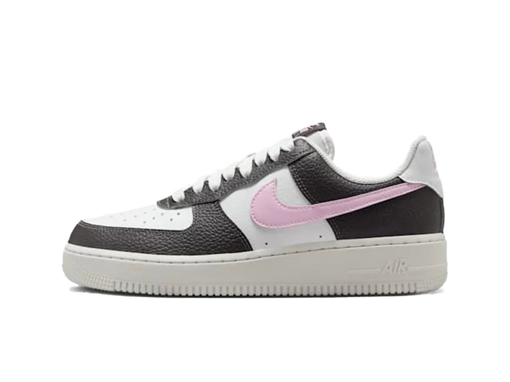 Nike Air Force 1 Low '07 "Medium Ash Pink Foam" jsou oblíbené tenisky se svrškem, který je složen z hladké bílé kůže v kombinaci s tmavě šedými zvrásněnými panely. Design doplňuje pastelově růžové Nike Swoosh logo tkaný štítek na jazyku.