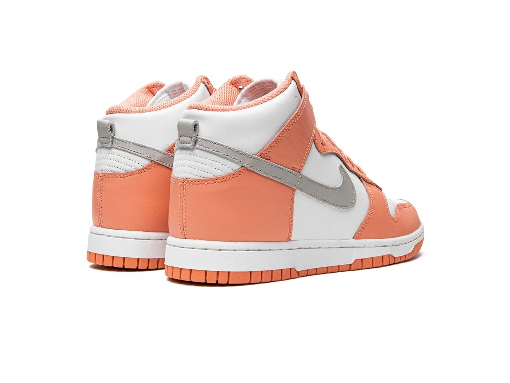 Nike Dunk High "Salmon" byly vydány na jaře 2022. Tato originální silueta v bílé a lososové barvě je doplněna o vintage mezipodešev a díky tomu má teniska jedinečný vzhled. Celkový dojem z tenisky zvýrazňuje Nike Swoosh Logo v šedé barvě.