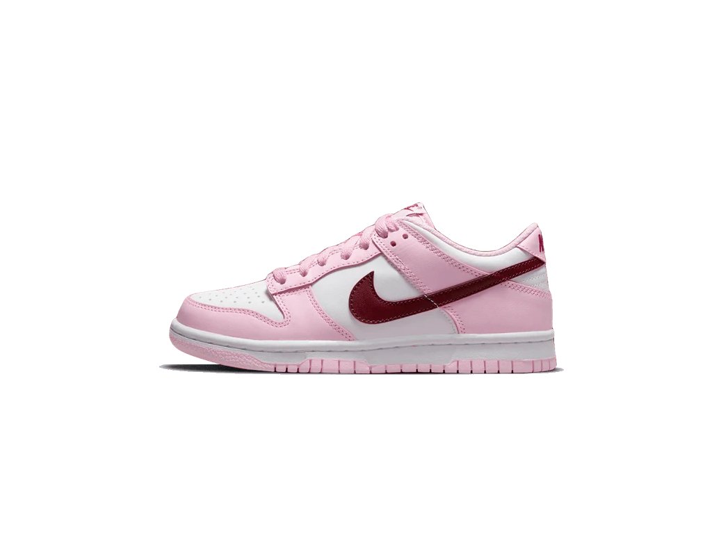 Nike Dunk Low "Pink Red White" (PS) byly vydány v létě 2021. Tenisky mají bílý kožený svršek v kombinaci se světle růžovými panely. Design dotváří fialové Swoosh logo na boku tenisky. Značka Nike je vyšita na patě ve fialové barvě.