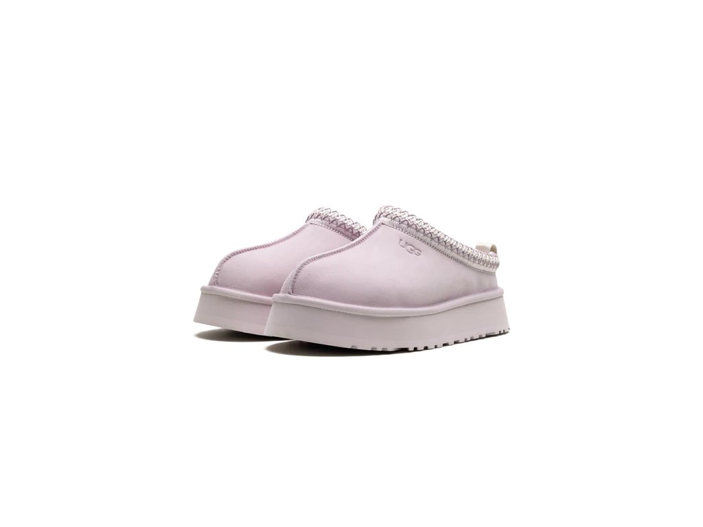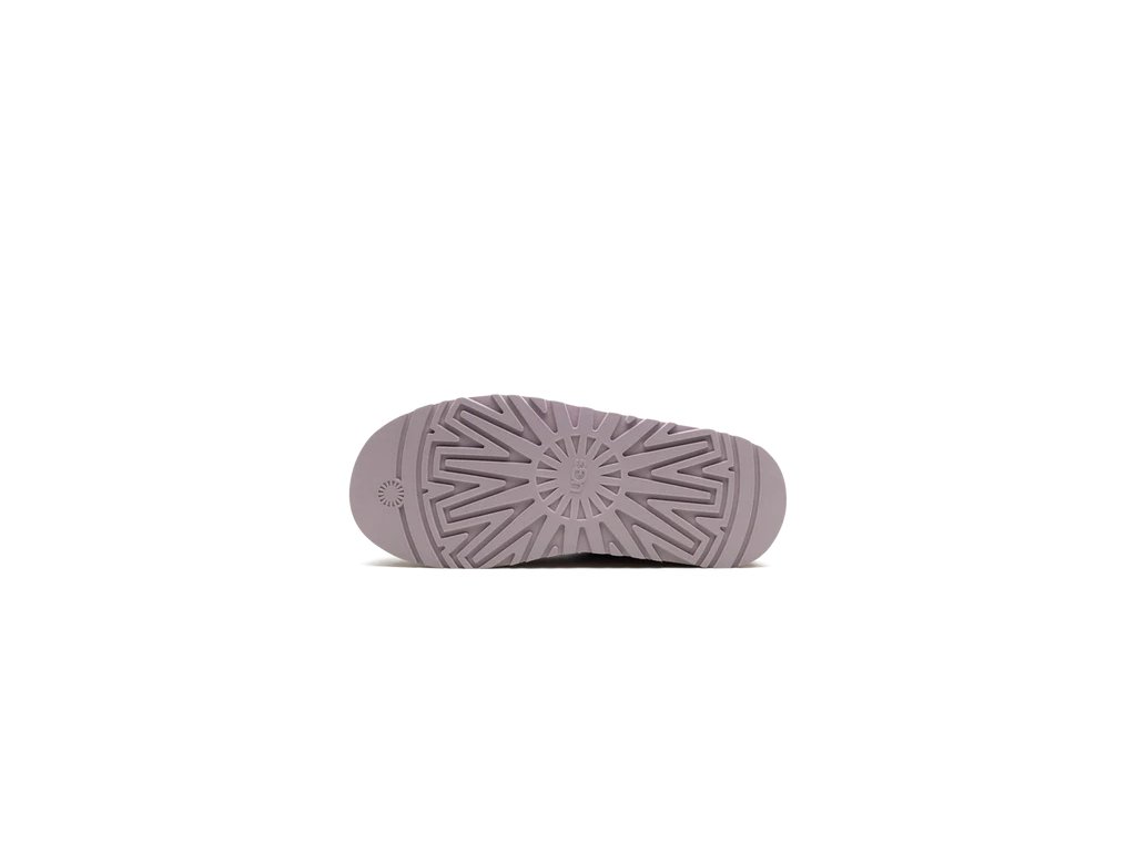 Tento model UGG má siluetu pantoflí UGG s platformovou podrážkou pro dodatečné tlumení. Je vyroben z toho samého semišového svršku v lila barvě. Je také vyložený charakteristickou směsí vlny UGG pro pocit pantoflí. Jeho textilní lemování je vyrobeno z materiálu z 100% recyklovaných polyesterových vláken.